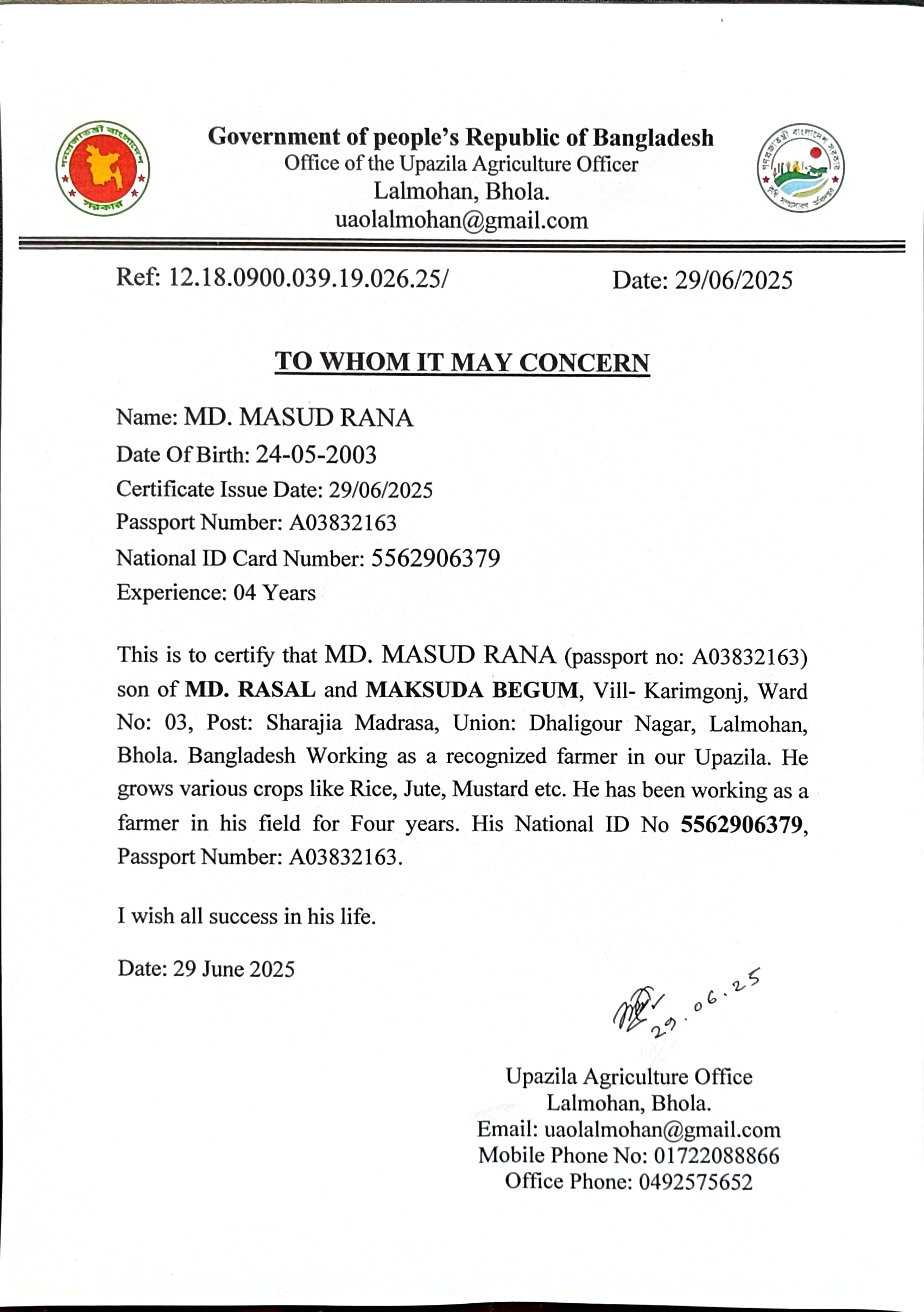 | ১০ | Farmers Certificate: Md. Masud Rana | | ২৯-০৬-২০২৫ | দেখুন |